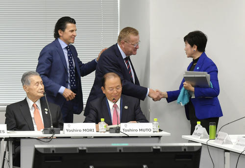20年東京五輪のマラソン・競歩会場の札幌への移転を協議する国際オリンピック委員会(IOC)調整委員会が30日、都内で始まった。札幌移転を決定したIOCからはジョン・コーツ調整委員長、組織委員会からは森喜朗会長、都からは小池百合子知事、橋本聖子五輪相と関係団体の長らが顔を揃えた。IOCの決定に都側は反発を強めており、小池知事は東京開催を主張。調整委員会は11月1日まで行われる。